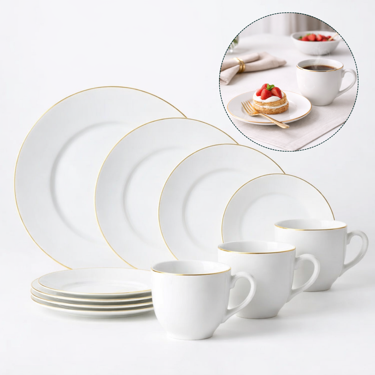 O conjunto é composto por pratos rasos, pratos fundos, pratos de sobremesa, xícaras de chá e pires, atendendo bem diferentes momentos da refeição. Uma ótima opção para quem busca funcionalidade, bom gosto e um visual refinado para servir convidados ou renovar a cozinha e sala de jantar.