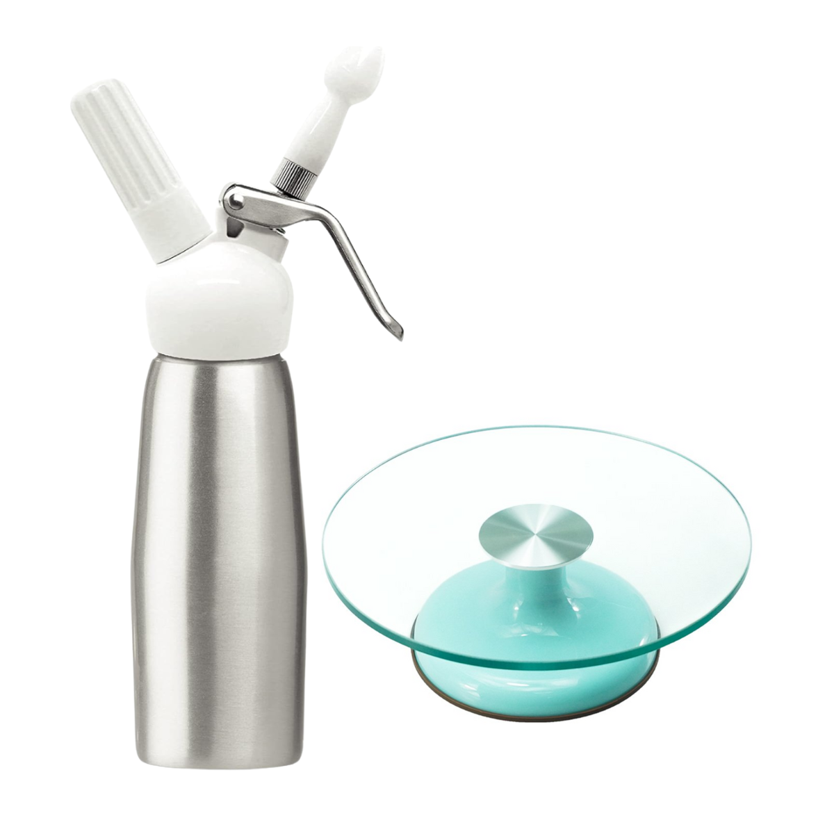 A Bailarina de Vidro Giratória é perfeita para confeiteiros e boleiros, garantindo movimentos suaves e precisos ao decorar bolos. Acompanha uma Garrafa de Sifão, ideal para preparar chantilly e espumas com praticidade. Conjunto essencial para quem ama confeitaria!