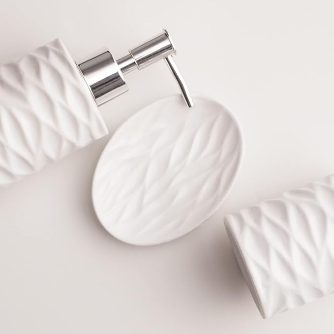 • Praticidade e Organização: O conjunto inclui três peças essenciais para o banheiro: porta-sabonete líquido, porta-escovas de dente e saboneteira, ajudando a manter o espaço organizado e arrumado.