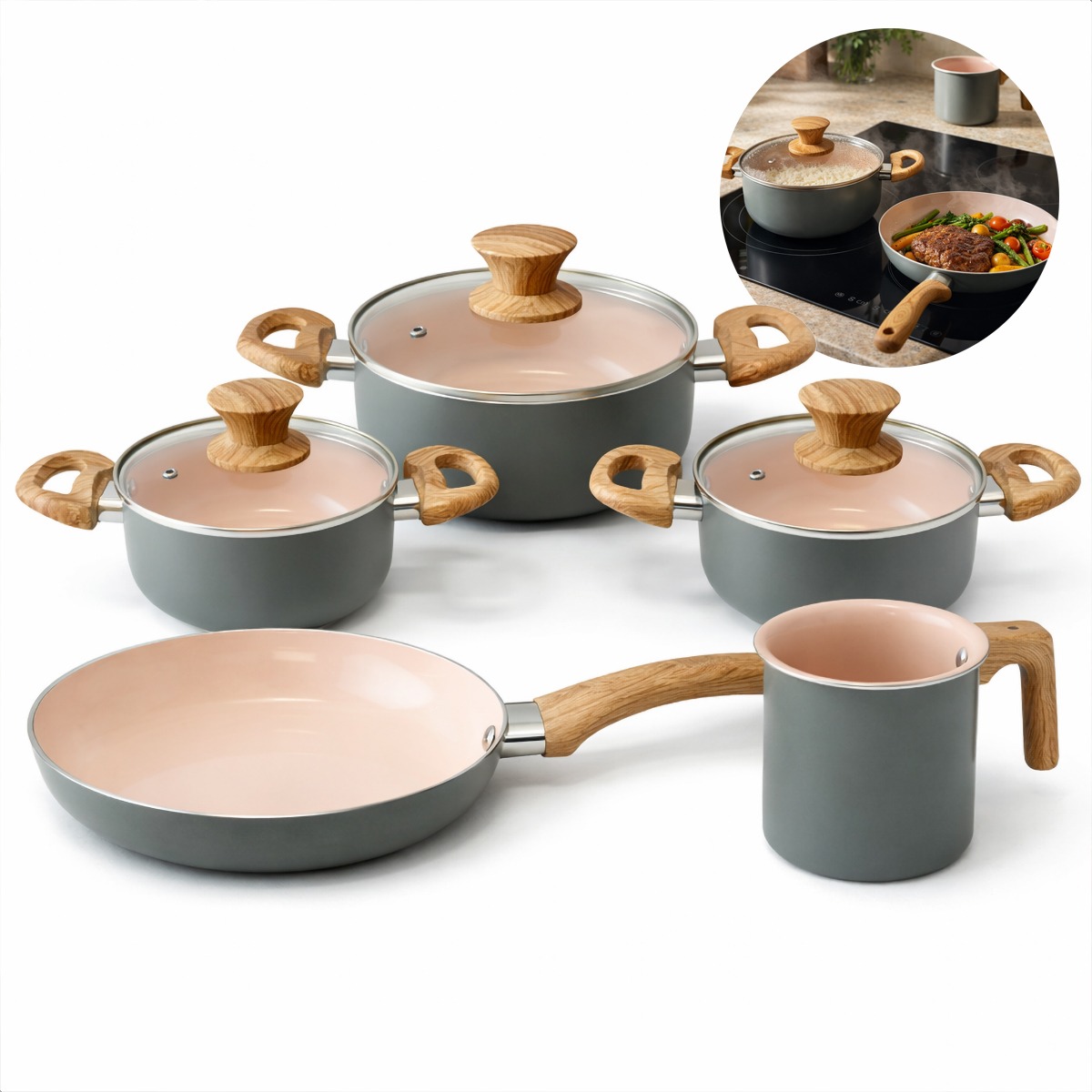 Compatível com fogões a gás e por indução, esse conjunto é versátil e funcional, perfeito para quem deseja equipar a cozinha com utensílios práticos, resistentes e elegantes.