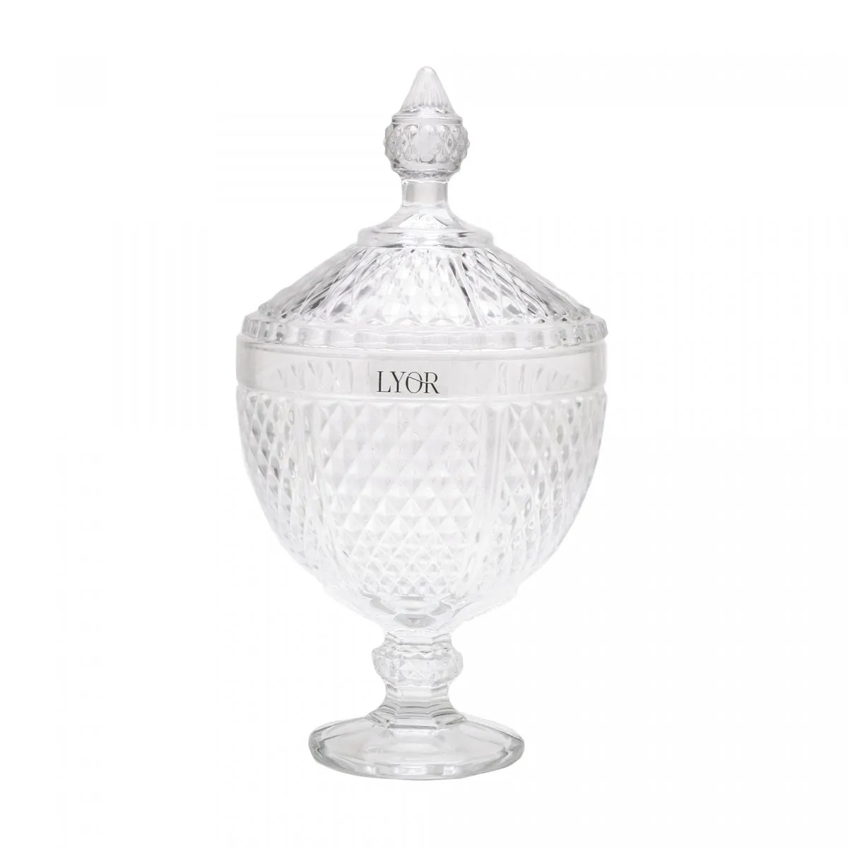 Elevando a elegância da sua decoração, o Potiche de Cristal com Pé Bico de Jaca Perseu da Lyor é uma peça única que adiciona sofisticação ao seu ambiente.
